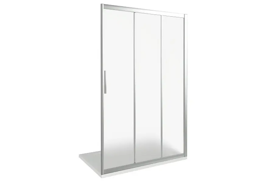 Душевая дверь Bas Orion обладает размером 110х185 см. Конструкция состоит из трех секций: одной неподвижной и двух раздвижных. Устанавливается в облицованный кафелем угол или нишу ванной комнаты на поддон или непосредственно на пол со встроенным душевым каналом или трапом