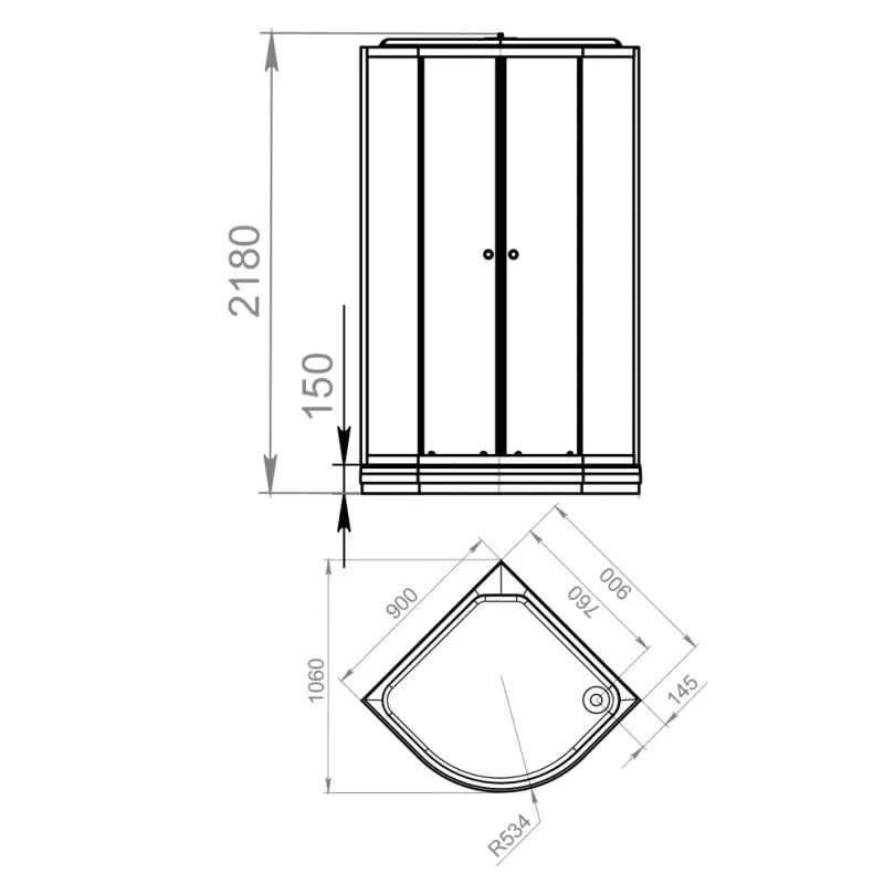 Габариты 90 × 90 × 218 см