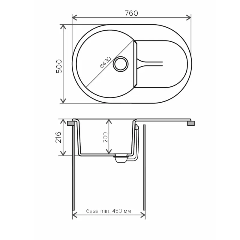 Мойка кухонная Polygran Atol имеет размеры 76х50 см., ширина чаши: 43 см. Овальная форма. Цена указана за мойку со сливом-переливом.