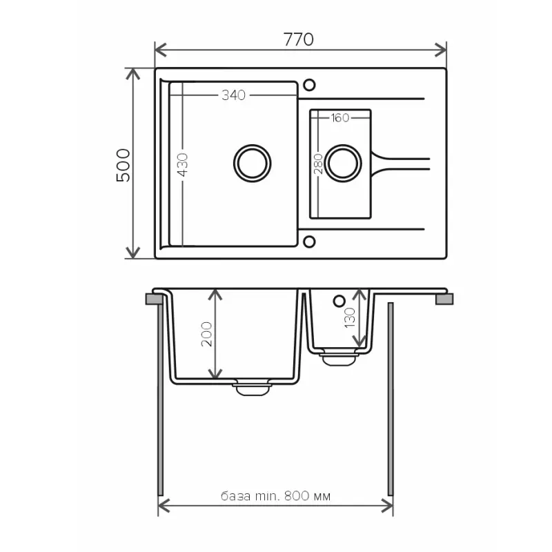 Мойка кухонная Polygran Brig имеет размеры 77х50 см., ширина чаши: 34 см. Прямоугольная форма. Цена указана за мойку со сливом-переливом.