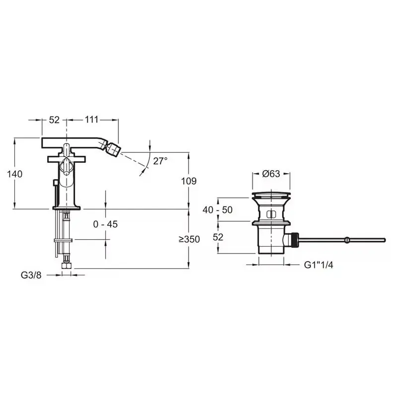 Смеситель для биде Jacob Delafon Purist с донным клапаном E14596-3-CP