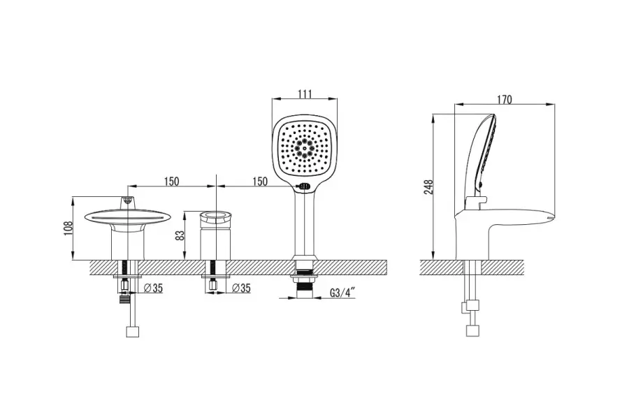 | Тип изделия | Смеситель на борт ванны |