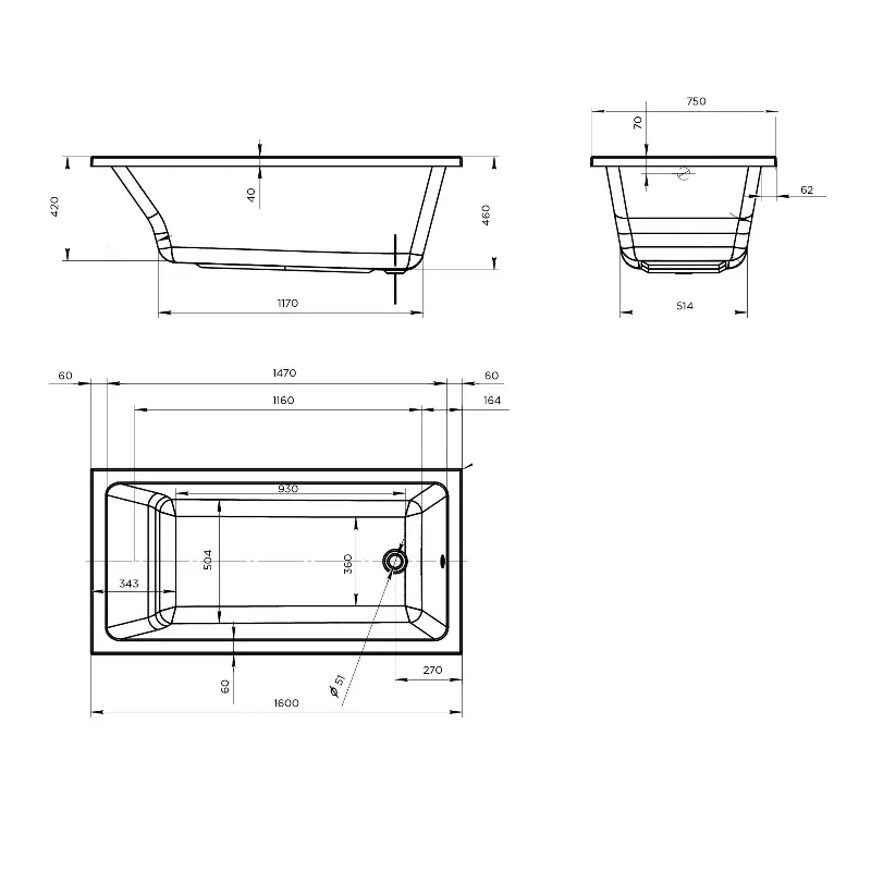Ванна акриловая 1MarKa Bianca 160х75 Белый 01бья1675