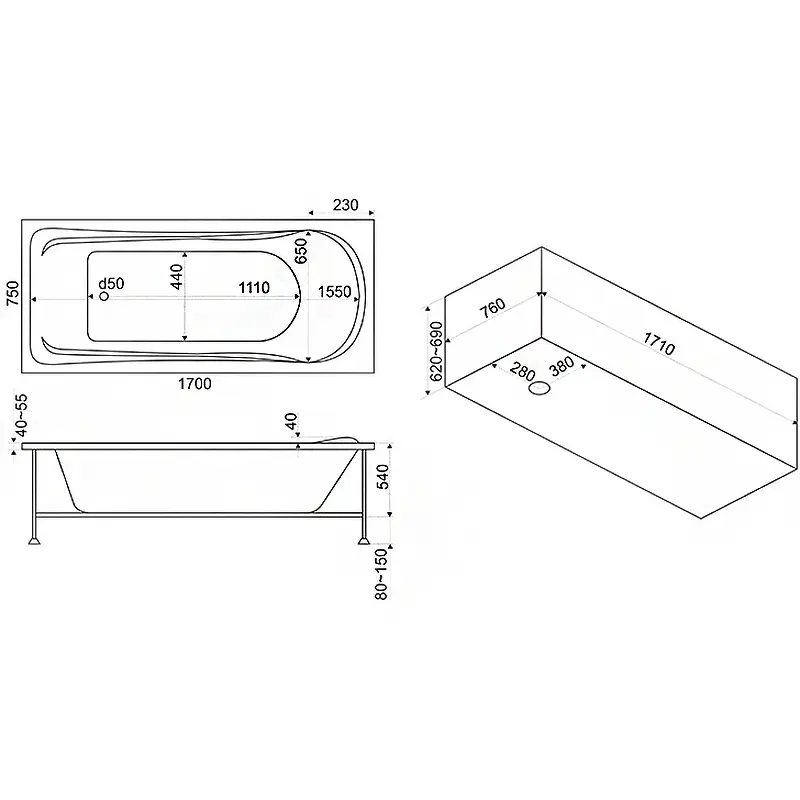 | Тип изделия | Ванна акриловая |