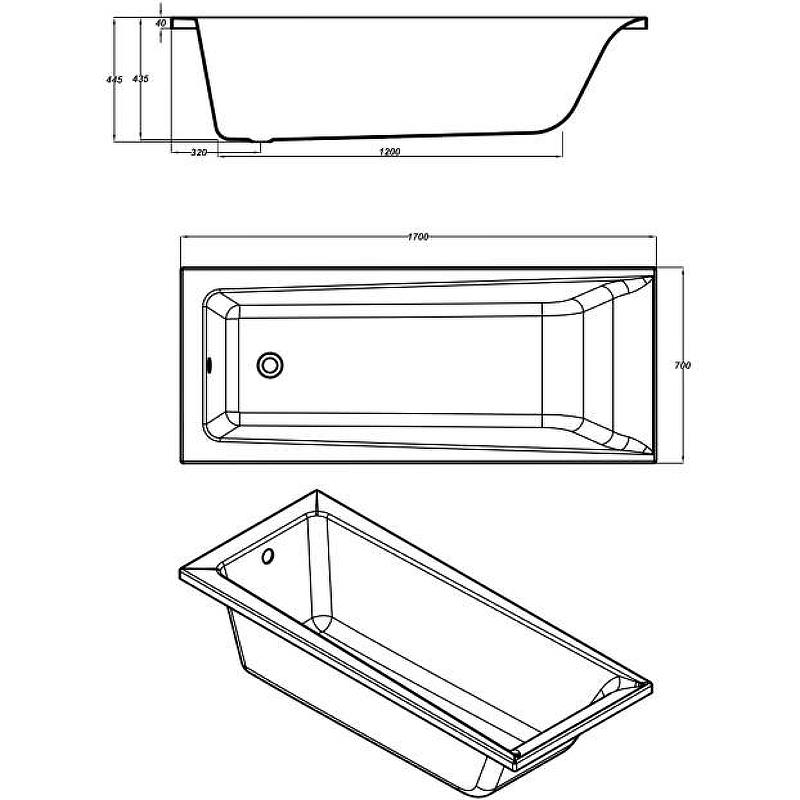Ванна акриловая Cersanit Lorena 170х70 Белый 64265