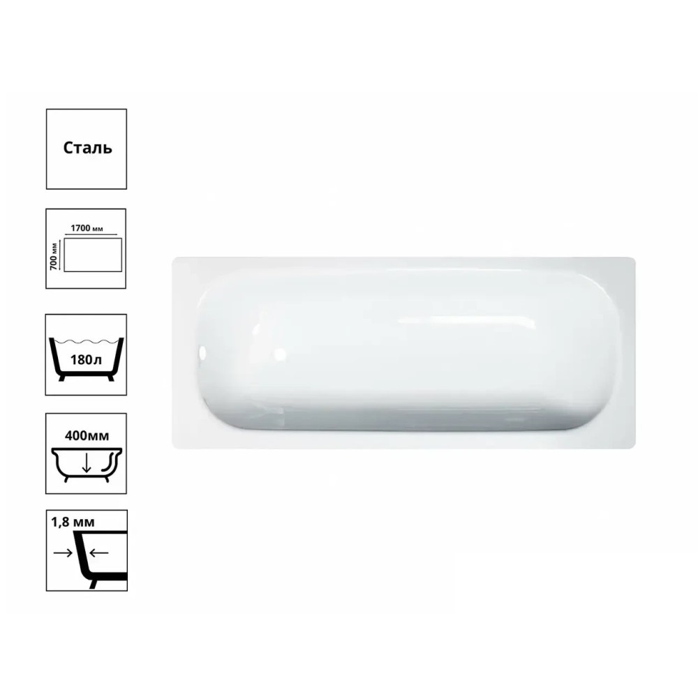 Ванна стальная Виз из коллекции Tevro имеет размер 170х70 см. Форма прямоугольная. С опорной подставкой в комплекте. Слив-перелив не входит в базовую комплектацию и приобретается отдельно. Дополнительно комплектуется смесителем, передней и(или) боковой панелью. Объем ванны 180 л.